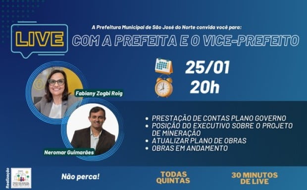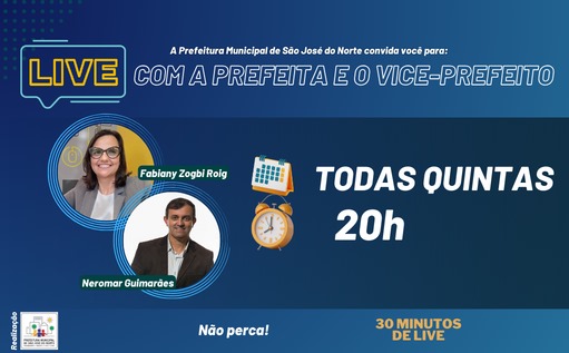 Prefeitura de São José do Norte convida para Live com a prefeita Fabiany Zogbi Roig e vice-prefeito Neromar Guimarães – Notícias Veja mais »