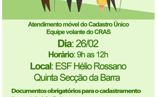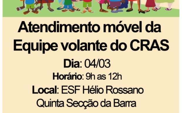 Atendimento móvel do Cadastro Único e equipe volante do CRAS estarão na Quinta Secção da Barra – Notícias Veja mais »