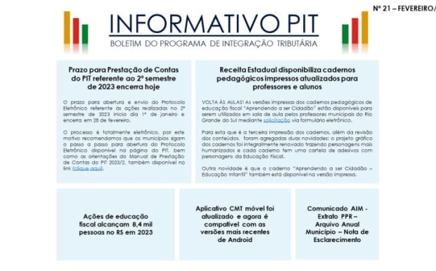 21ª Edição do Informativo do Programa de Integração Tributária- PIT/ Fevereiro 2024 – Notícias Veja mais »